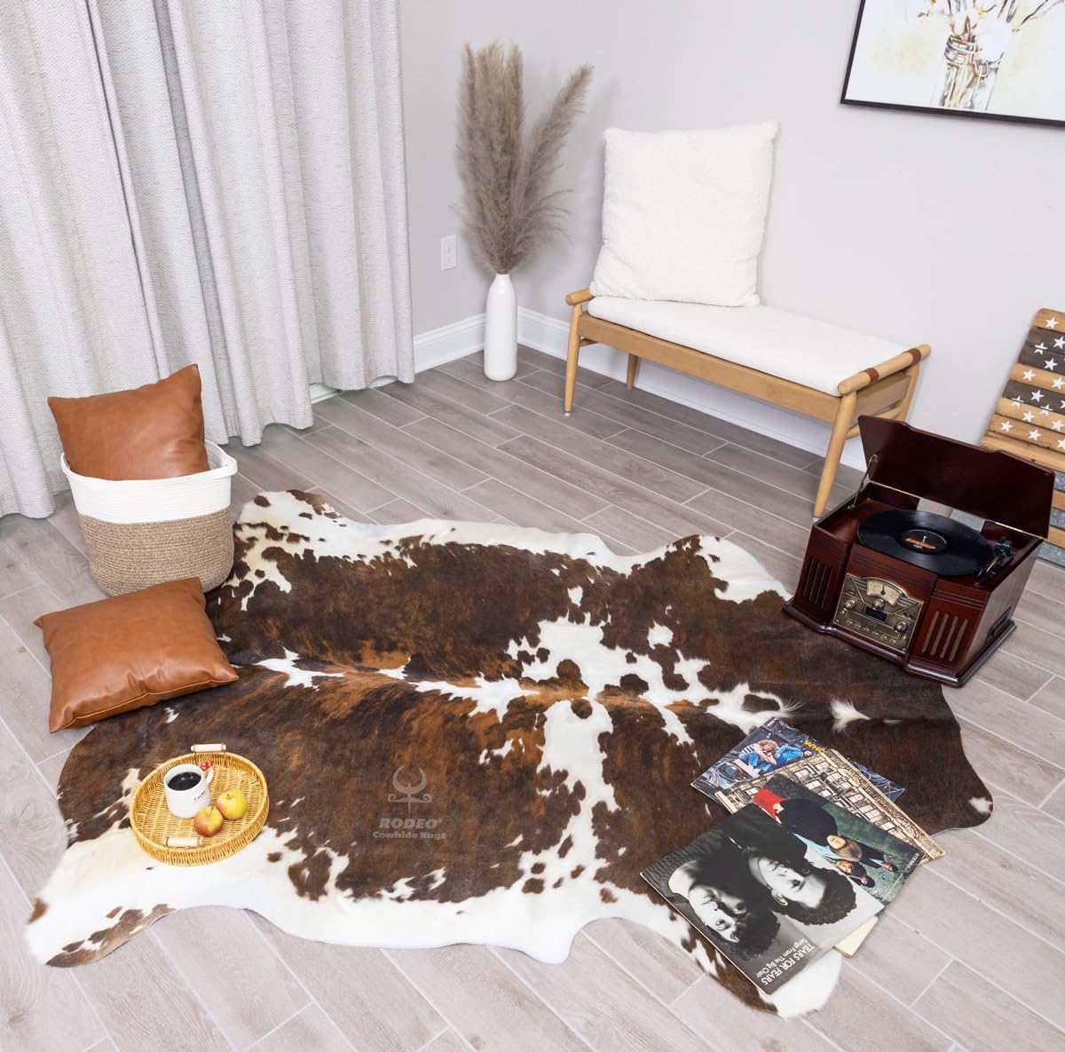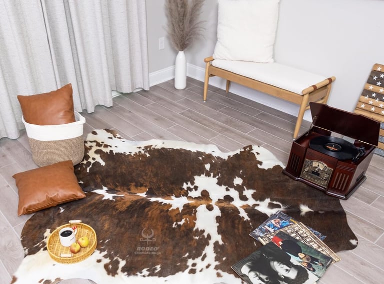 Tricolor cowhide area rug