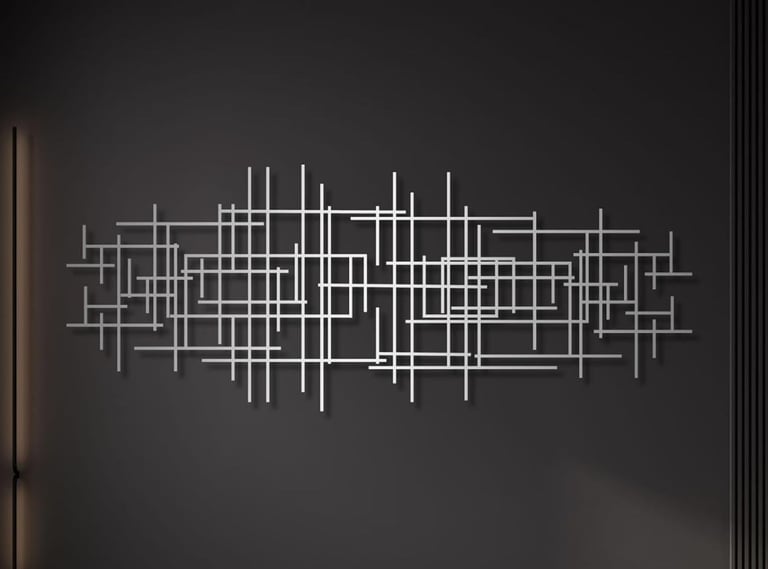 Silver geometric metal wall art