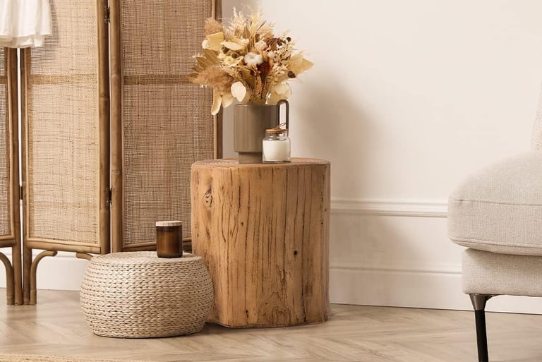 Solid wood tree stump side table