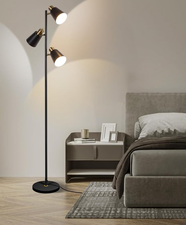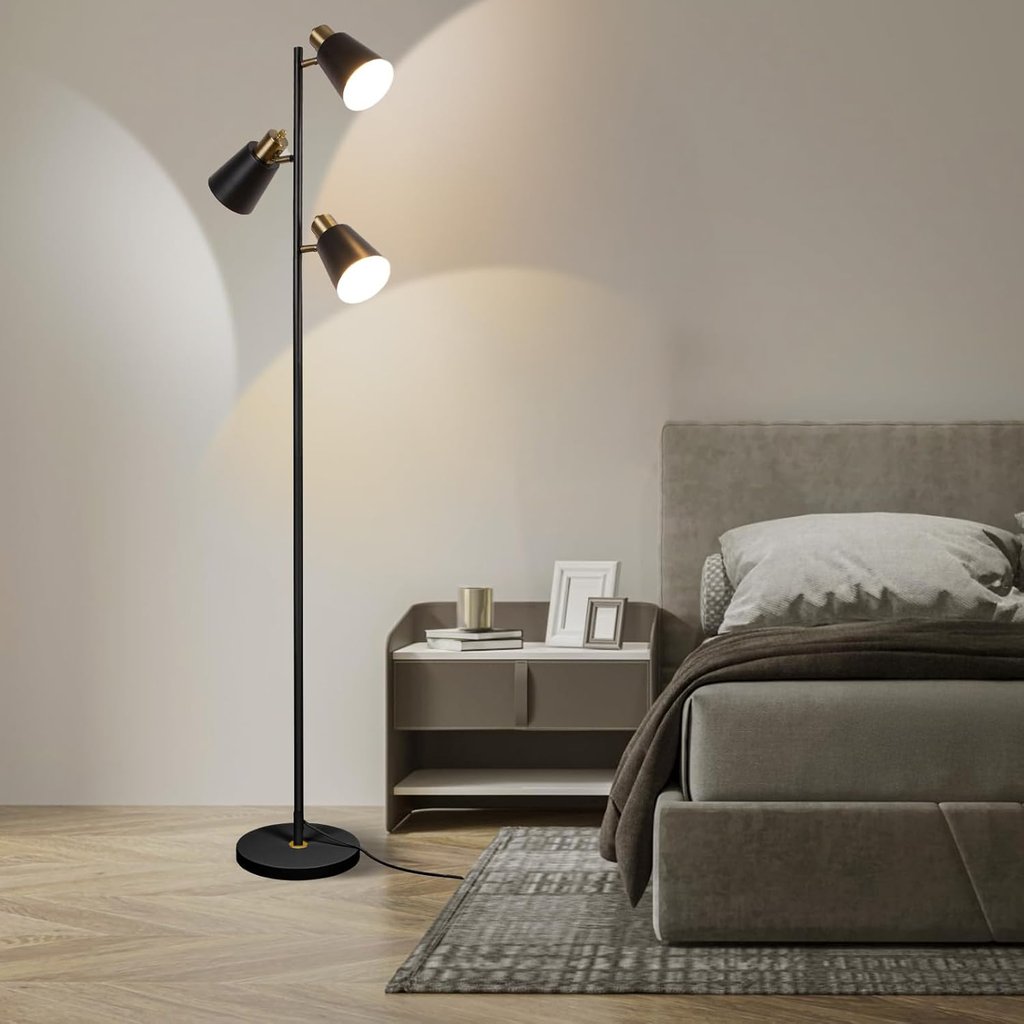 Black & brass 3-light floor lamp