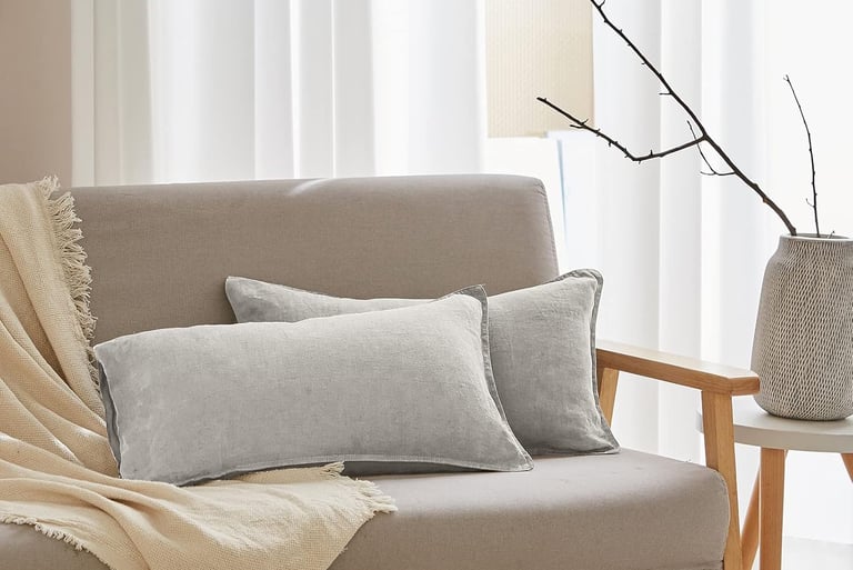 Gray linen lumbar pillow cover