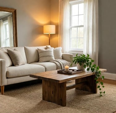 In a small living room, clutter is the enemy. Every extra object, unnecessary piece of furniture, or decorative item that doesn't earn its place makes the room feel more compressed. The goal is not a bare, empty room...it's a room where everything present has a reason to be there.