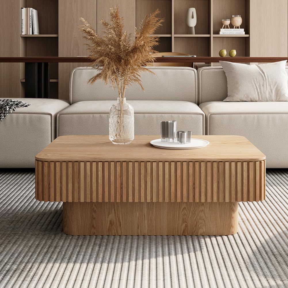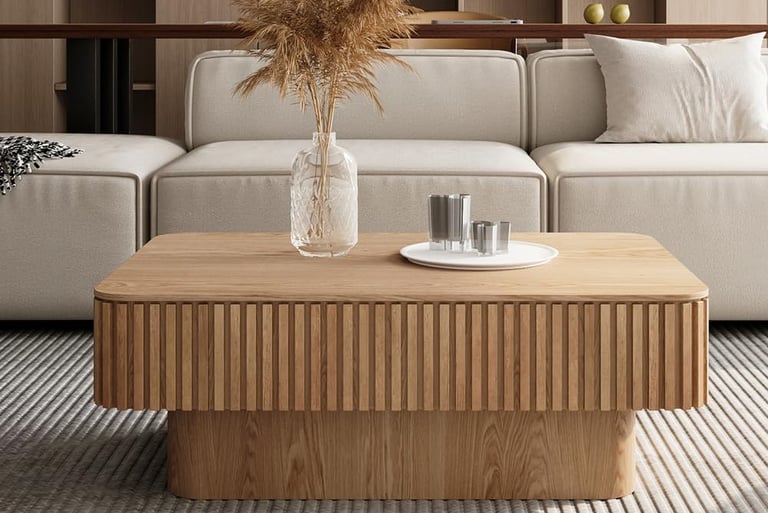 Fluted lift-top coffee table in natural oak