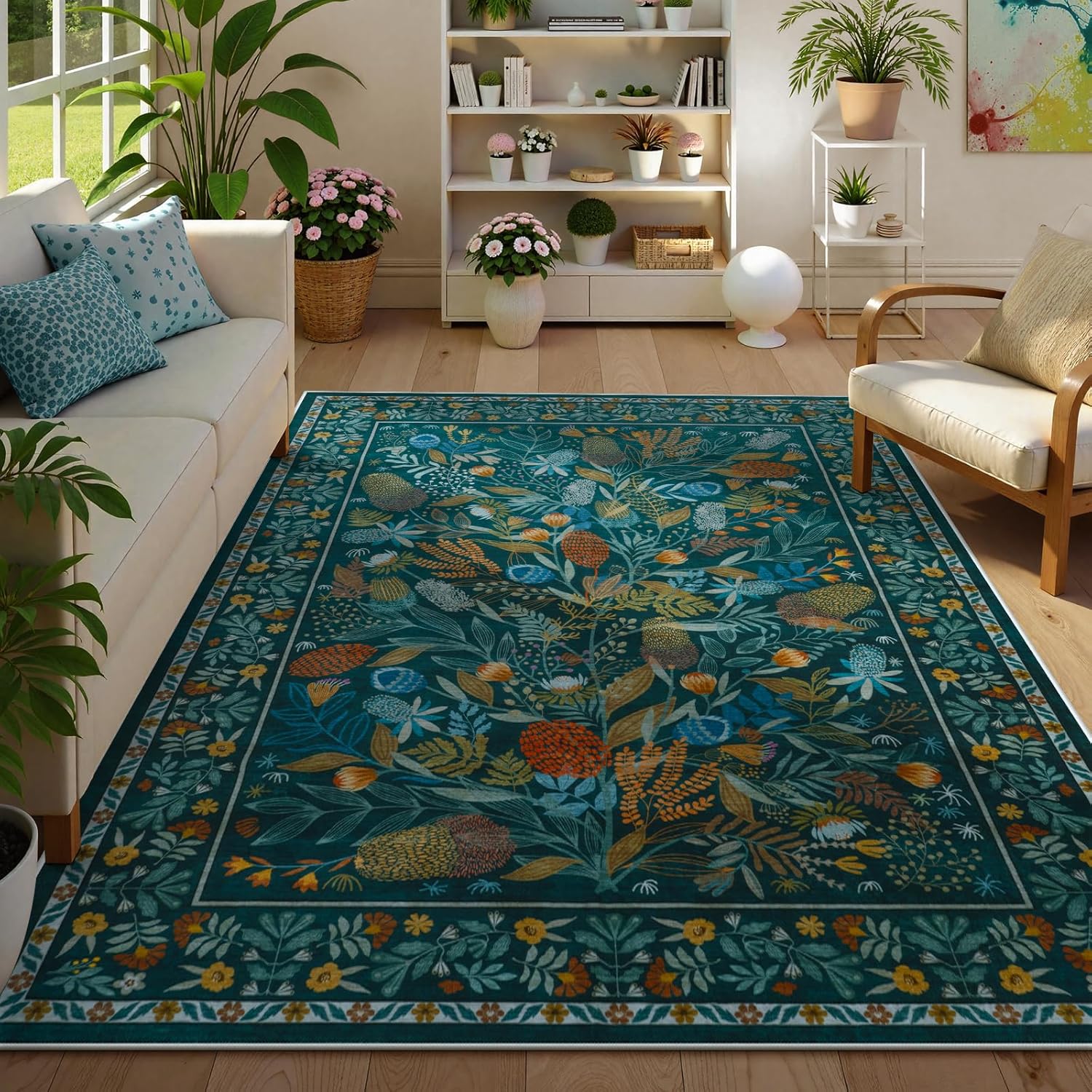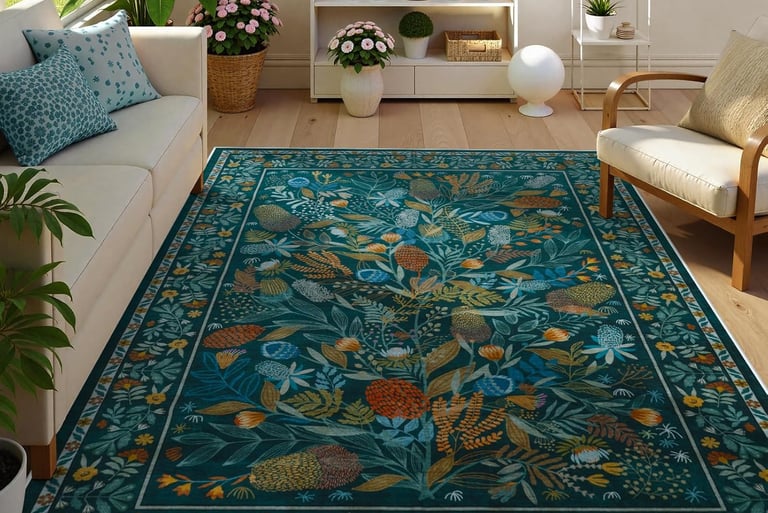 Teal botanical area rug