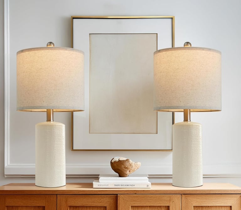 Cream ceramic cylinder table lamps