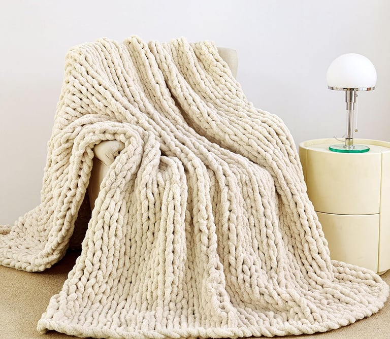 Ivory chunky knit chenille throw