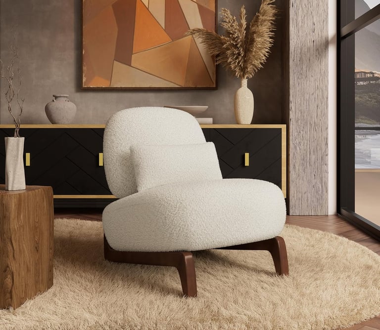 Beige boucle accent chair