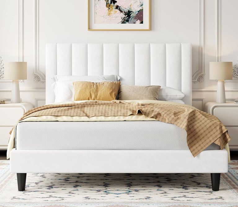 White channel tufted platform bed