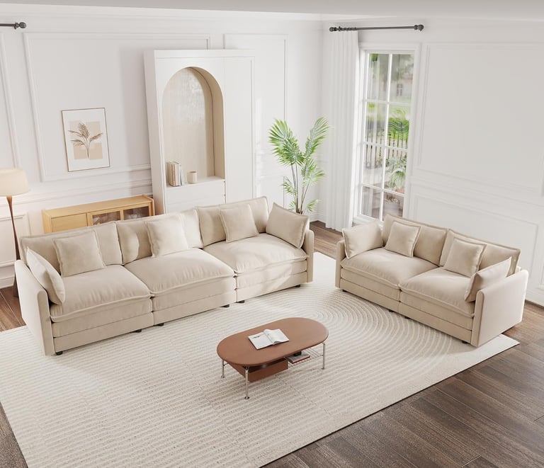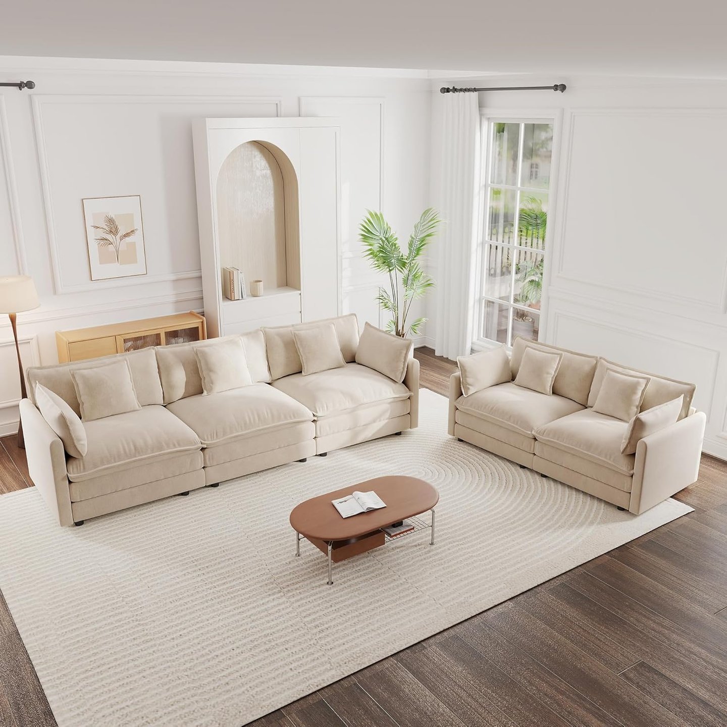 Luxury 2 Piece Cloud Couch Set, Light Coffee